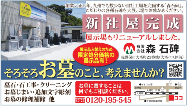 展示場リニューアルに伴い、展示品の入替えのため半数以上のお墓を現品処分特価で展示しています。